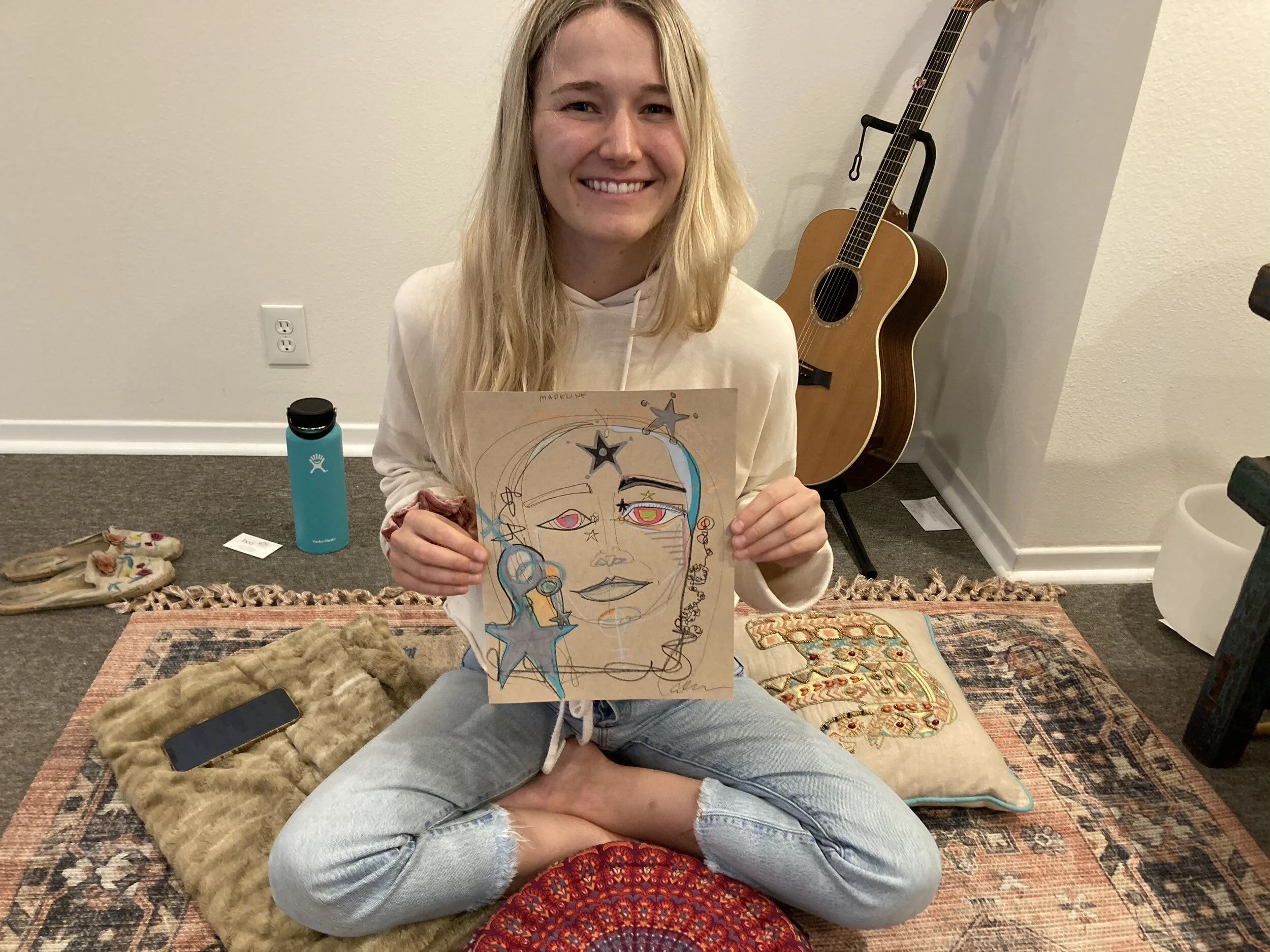 I would like to start by saying I am a licensed psychotherapist, and have also been to therapy for years as a client myself. But there are moments in life where you need something a bit bigger than the human realm- I woke up and literally searched on google “soul healer near me” only to find some funky off-putting psychic shops. Needless to say I didn’t call, but I guess I put out the search to the universe because later that day on a walk with a friend I stumbled into a new store to find what I experienced as a soul healing experience with Liz! Sitting for a portrait with Liz was intriguing, exciting, and ultimately a physical and emotional release and unlocking of blocked energy. I came in with a heavy heart and left feeling as light as a blue bird, open to the unknown and leaving with a deeper understanding of the beyond and capacity of my true self. By having a soul portrait drawn, I was able to let go of old stories that no longer serve and allow myself to be the ocean of feelings that I am. Highly recommend this if you are open, curious, and searching.